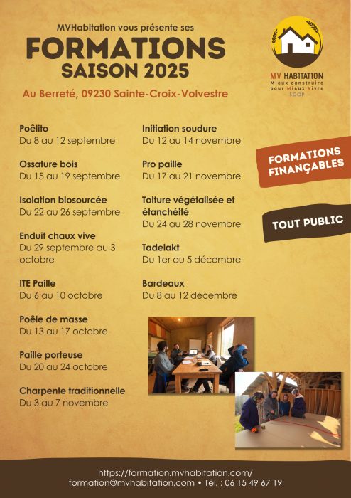 Découvrez notre calendrier de formation pour la rentrée 2025 ! Des formations écologiques, tout public, pour découvrir les bases d'une technique de construction.